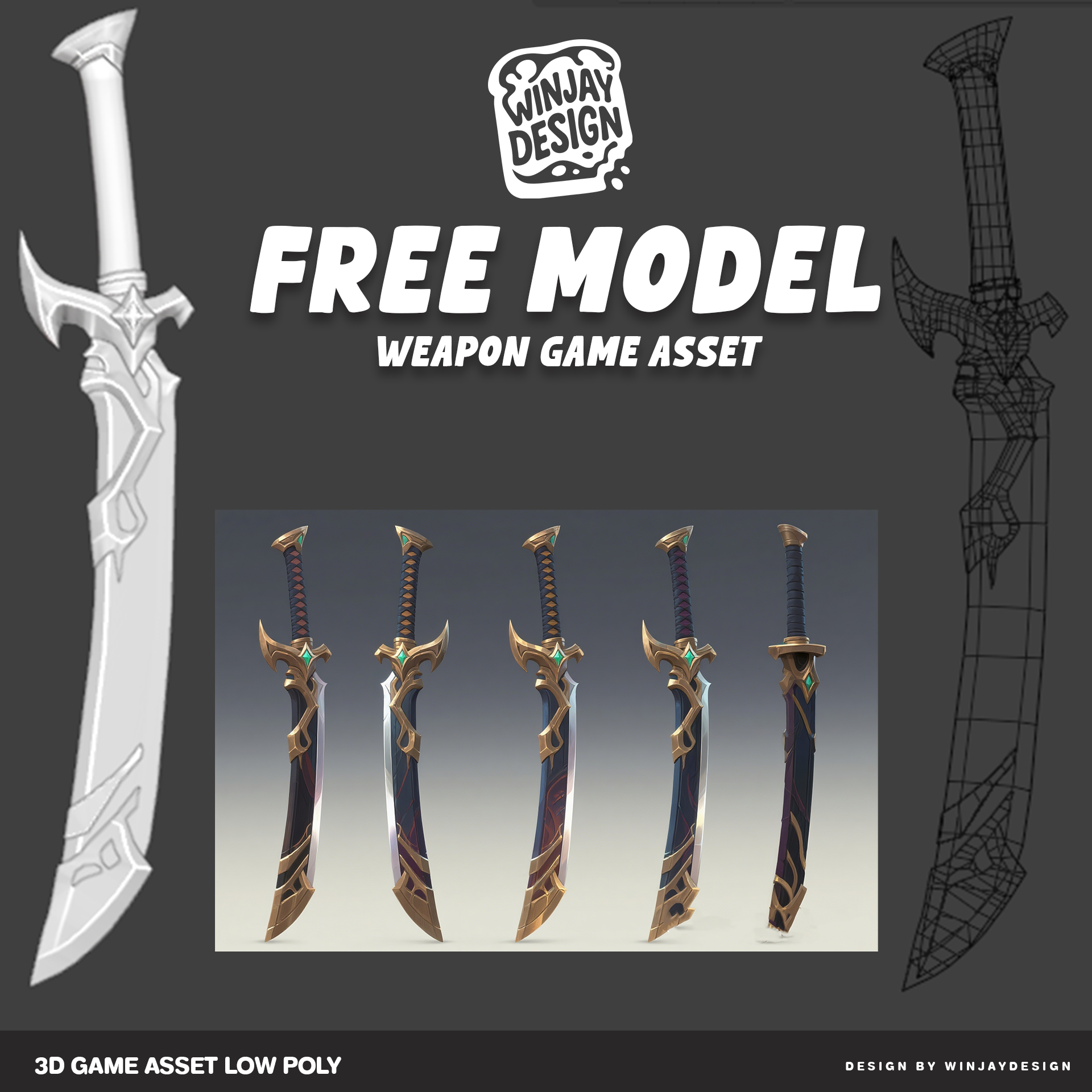 3D Sword Katana Game Asset – Free model : Design by winjaydesign.